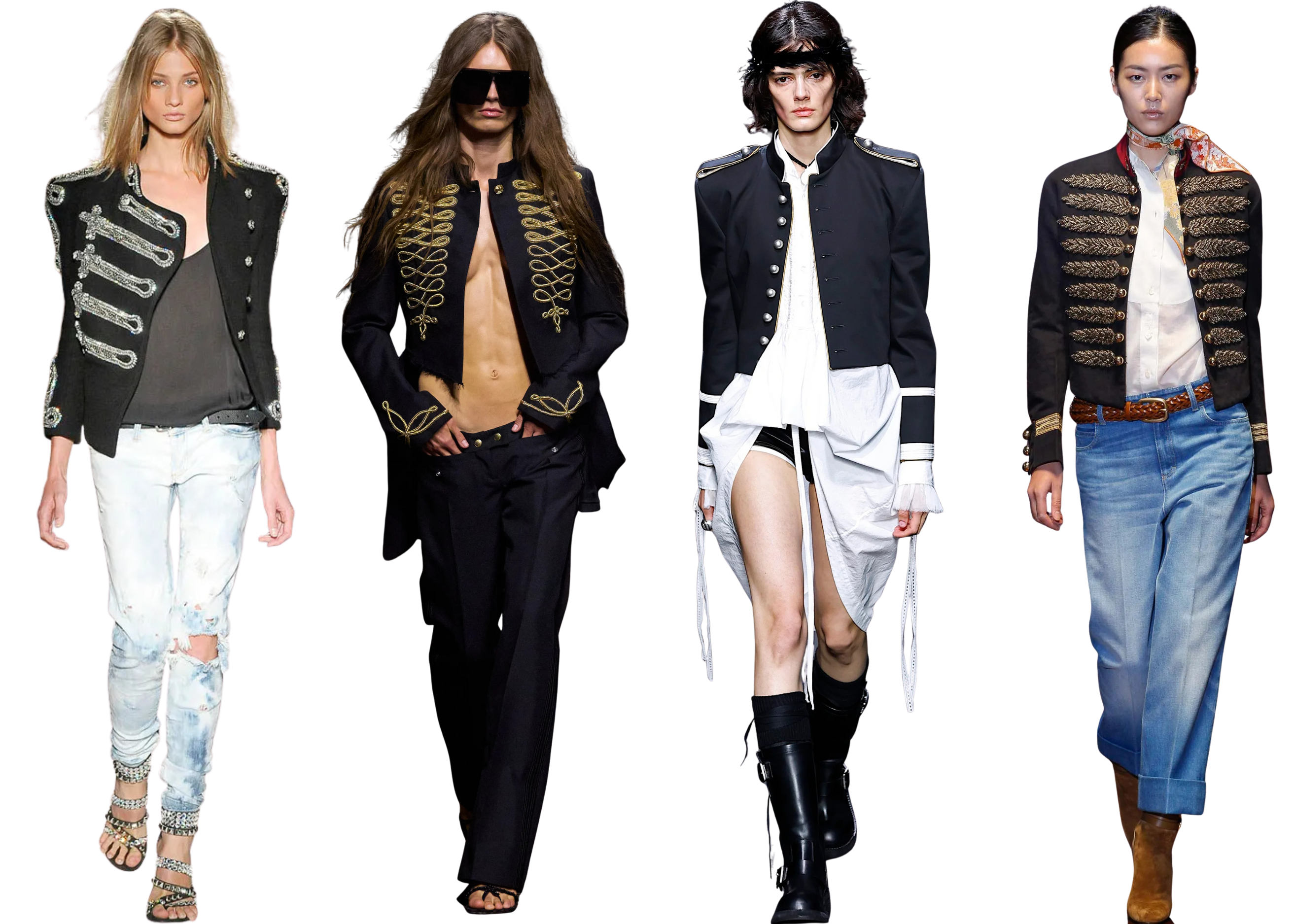 Military jackets - I flagged this one in my Top 5 Trends From SS26 Fashion Week post. Part Indie Sleaze, part response to the world events, brass buttons and frog closures are coming for your wardrobe next year. I noticed that Urban Outfitters is already selling a bunch this fall.